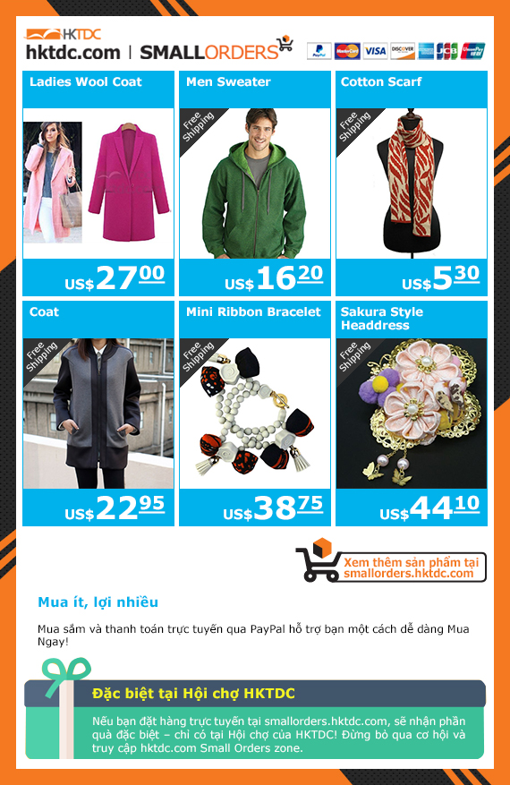 HKTDC cung cấp một loạt các chương trình ưu đãi dành cho khách mua hàng thương mại như giảm giá khách sạn và vé máy bay. Để biết thêm thong tin chi tiết vui lòng liên hệ văn phòng HKTDC gần nhất